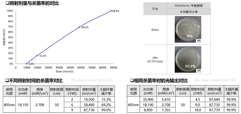 然而,UV-A 中的某一特定波段也具有殺菌消毒功能,這個波段在405nm附近,由于人眼可見,